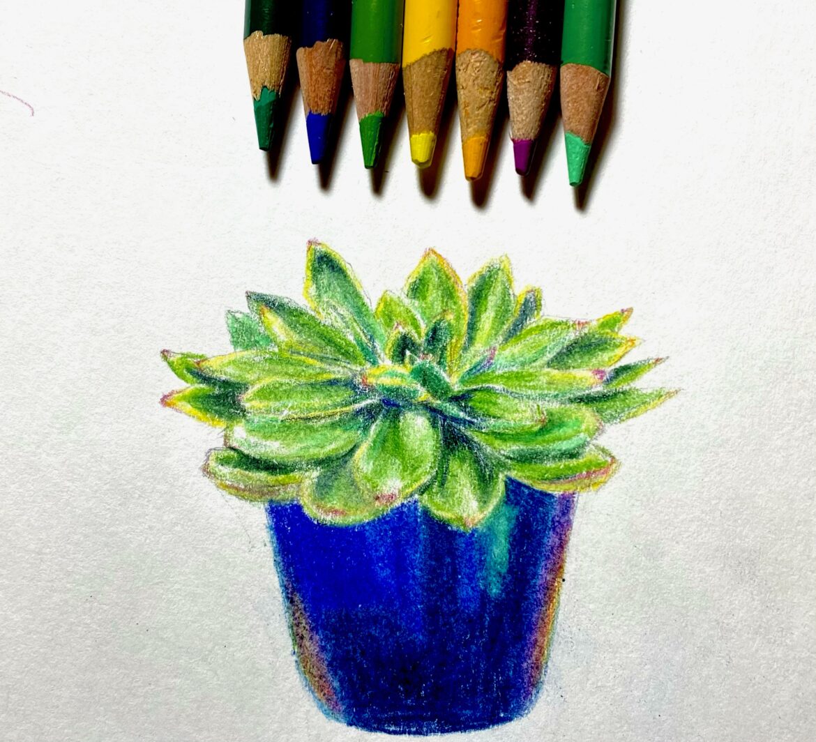 9. To finish off the succulent, I blended the colored pencil with a blender pencil. If you don’t have a blender pencil, you could also use things like a blender stump to blend.